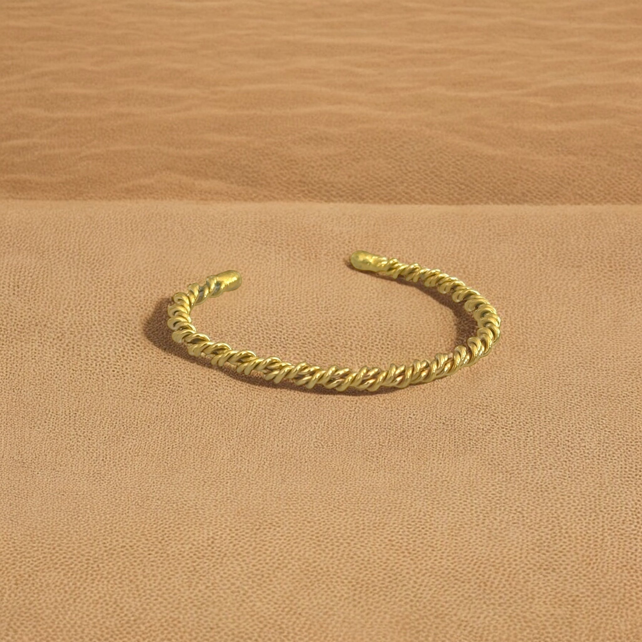 - Produktbeskrivelse : Dette tvinnede messingarmbåndet gir tekstur og bevegelse til antrekket ditt – enkelt, elegant og fullt av karakter. Lett og tidløst for hverdagsbruk.