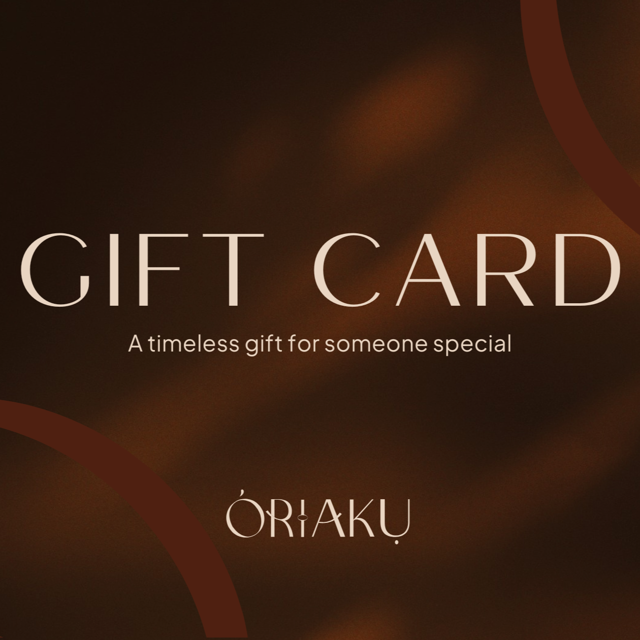 Usikker på hvilket gavekort du skal velge? La dem bestemme med ORIAKU-gavekortet – et digitalt gavekort laget for gjennomtenkte gaver. Det er den perfekte måten å dele håndlaget skjønnhet, dristig enkelhet og kulturell tilknytning uten gjetting.