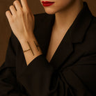 - Produktbeskrivelse : Et minimalistisk armbånd formet av harmoni. De to vertikale linjene speiler hverandre og representerer stille styrke og likevekt.