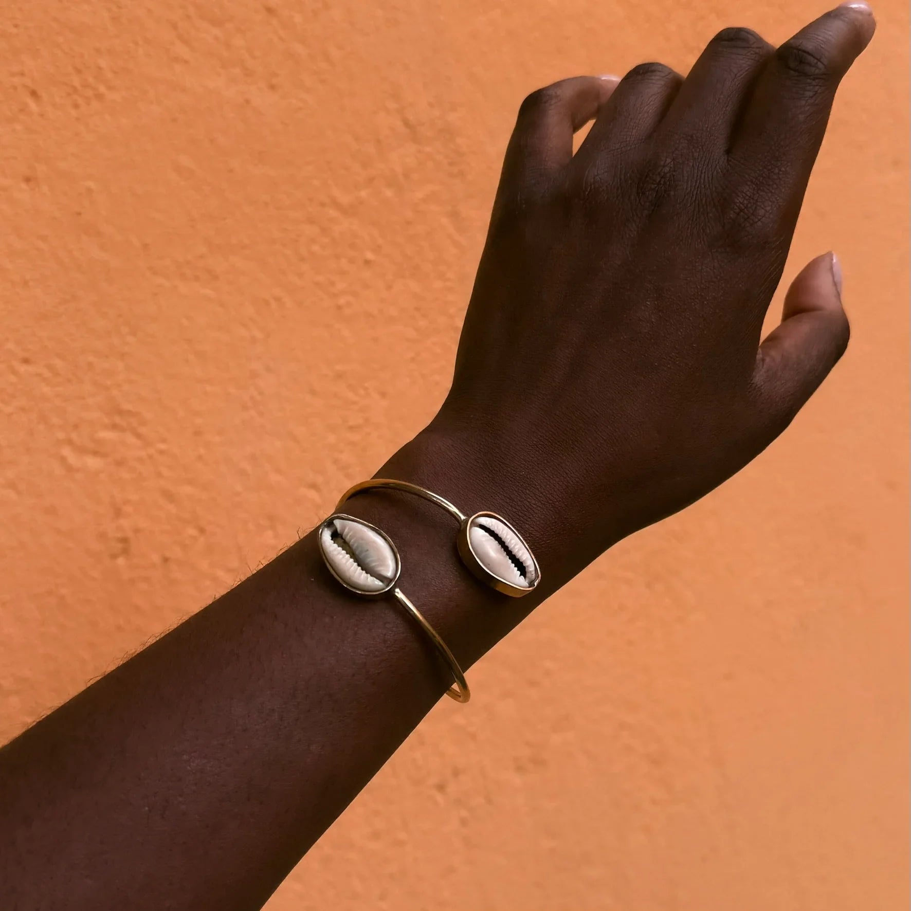 - Beskrivelse : En slående dobbel kaurimansjett inspirert av gamle symboler på styrke. Dalla har to naturlige kauriskjell – en gang brukt som valuta og fortsatt verdsatt for sin kraft til å beskytte og tiltrekke seg overflod. Besatt i håndformet messing, omslutter dette smykket håndleddet ditt i eleganse med mening.