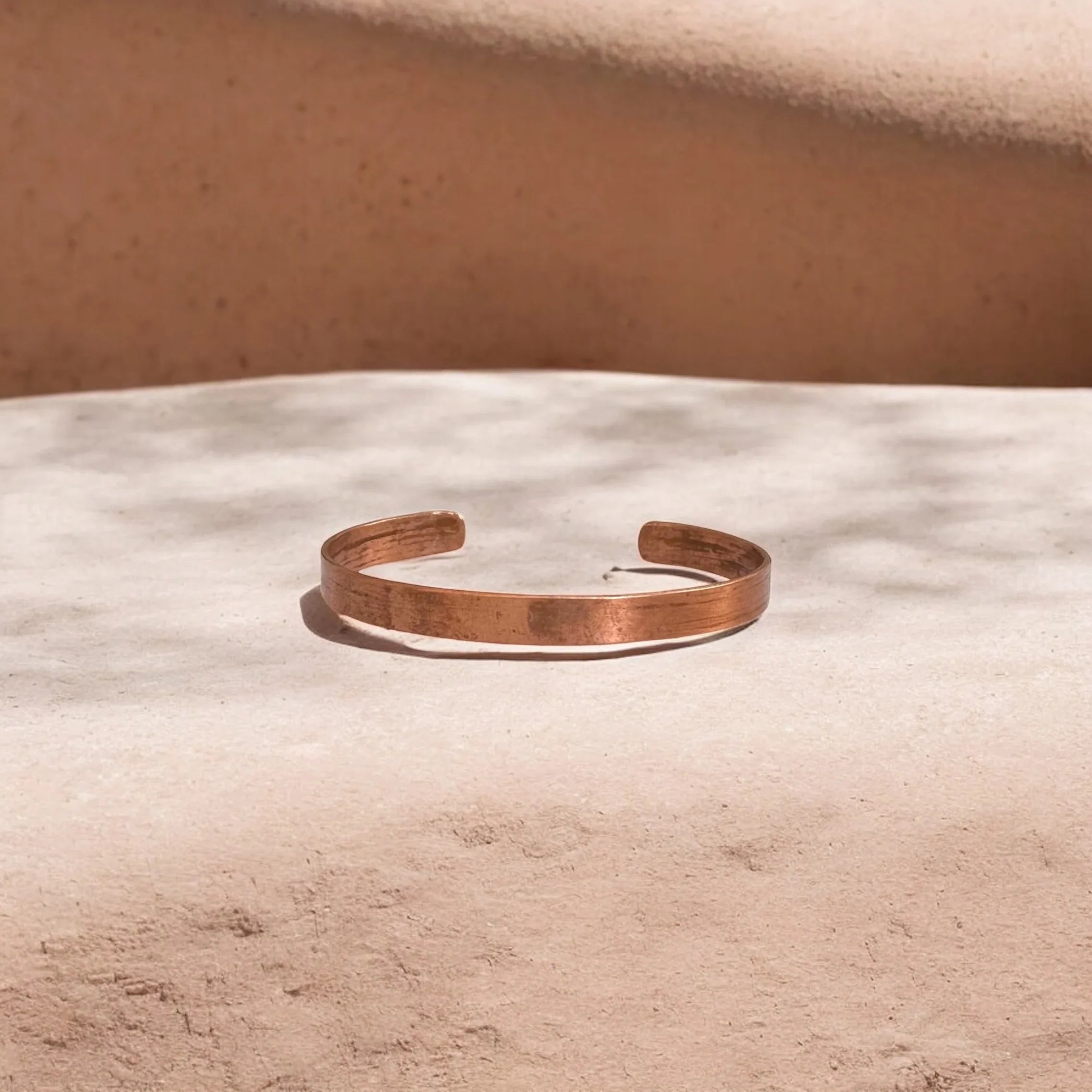 Produktbeskrivelse : En elegant og jordende mansjett laget av rent kobber – perfekt for hverdagsbruk.