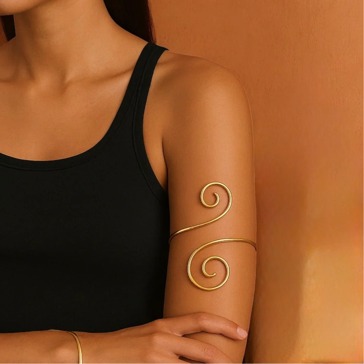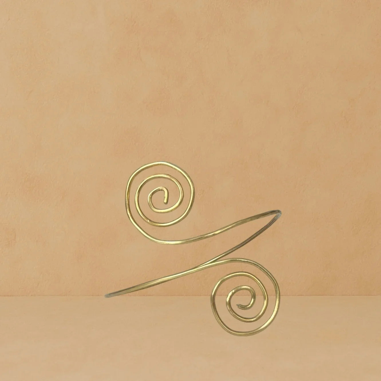 - Beskrivelse : Møt Gbèdè – en leken messingspiral som omslutter overarmen din med uanstrengt stil. Lett, iøynefallende og full av personlighet.