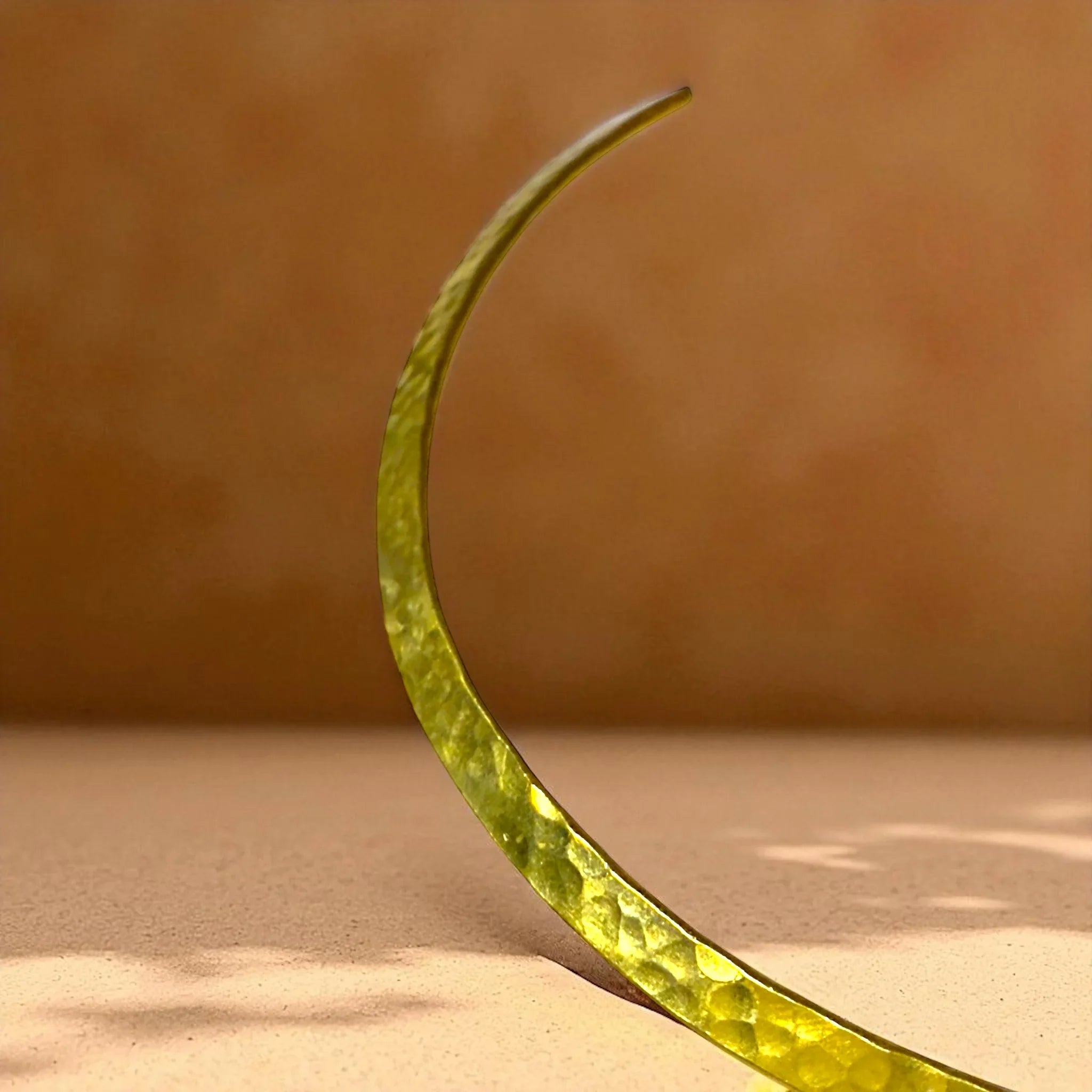- Produktbeskrivelse: En hamret messingchoker med en ren, minimalistisk form. Lett og komfortabel, perfekt for lag-på-lag eller bruk alene.