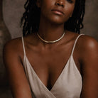 - Produktbeskrivelse : Nuru Choker er et skulpturelt messingstykke designet for å sitte tett inntil halsen. Håndlaget i Kenya, gjenspeiler det afro-skandinavisk balanse gjennom rene linjer og varme metalliske toner.