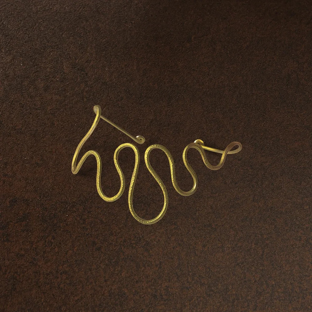 - Beskrivelse: Ziga-smykket kan brukes både som et armbånd til overarmen eller et halskjede. Det er en leken vri på tradisjonen, med flytende kurver som gir rytme og energi til stilen din. Håndlaget av messing med en rik gyllen tone, er det både dristig og uanstrengt elegant.