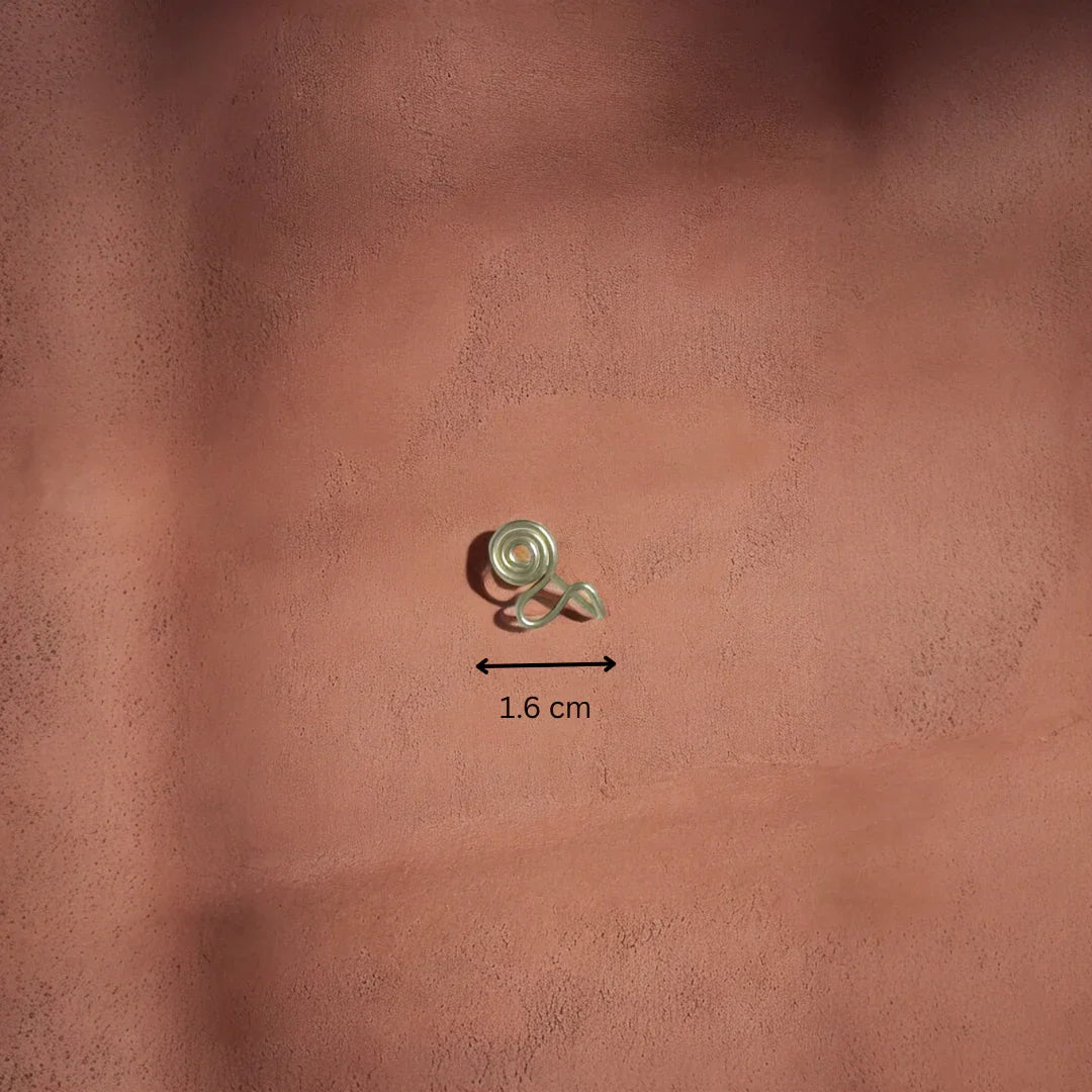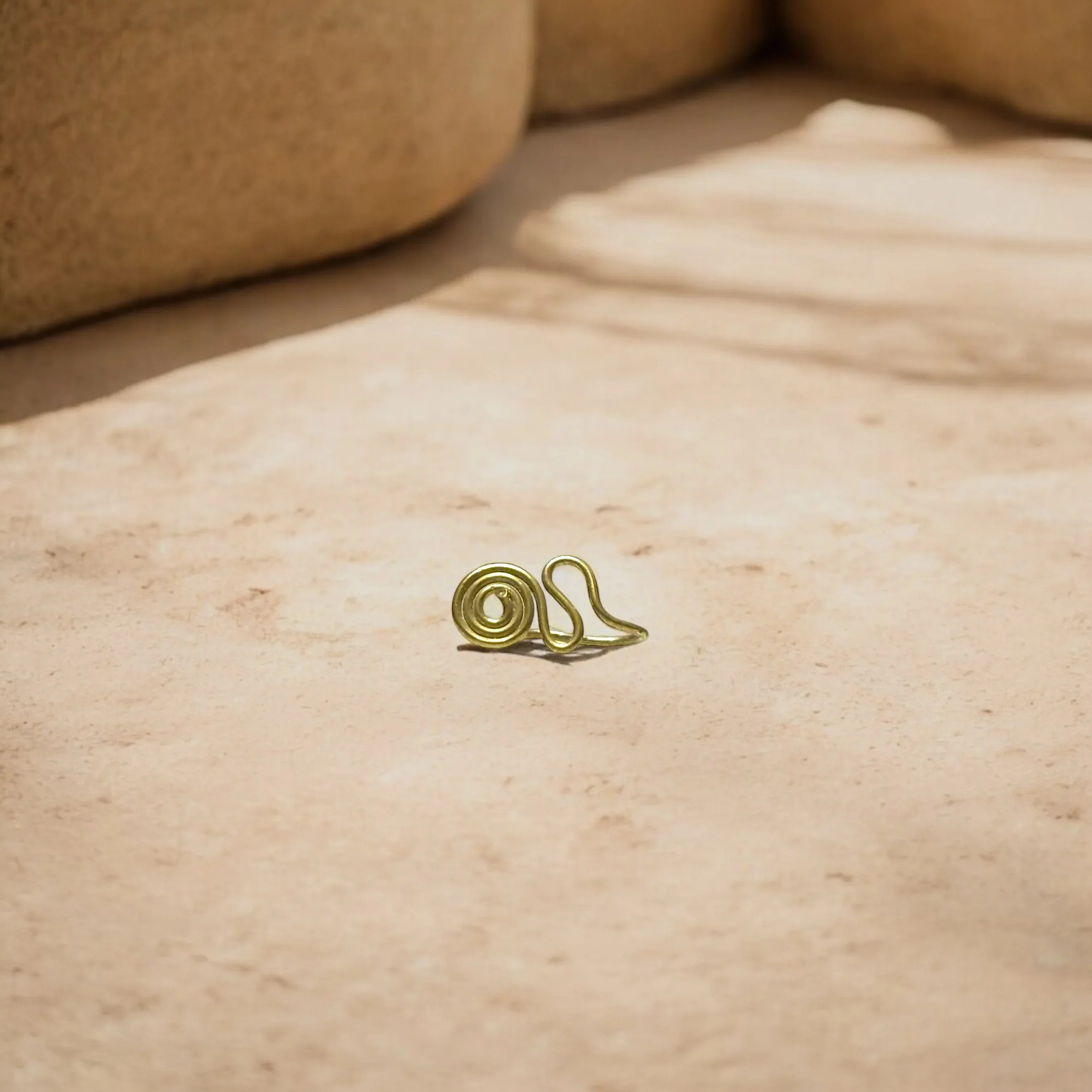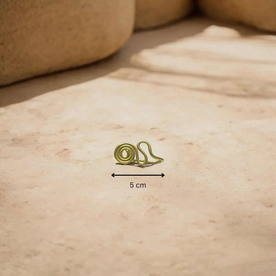 - Produktbeskrivelse : Trenger ikke å feste nesen. Denne dristige, men minimalistiske neseringen har en håndvridd spiral som fanger bevegelse og mening. Et uttrykk for identitet og håndverk, formet av dyktige hender i messing.