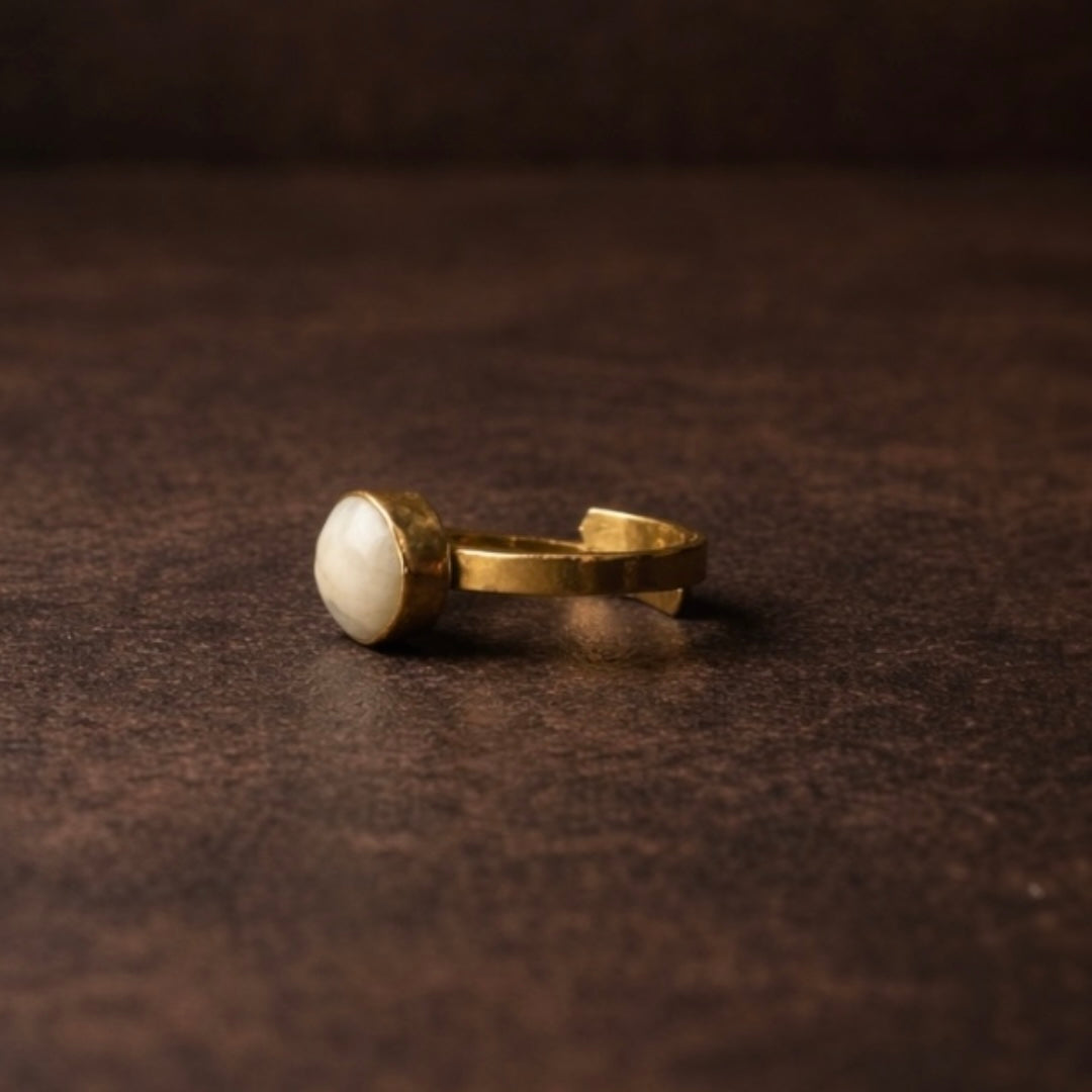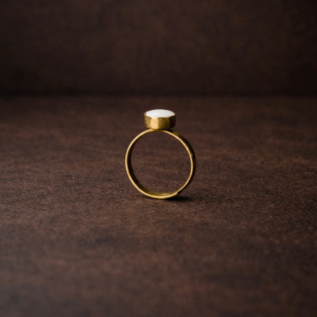 - Produktbeskrivelse : En stille statement-ring definert av balanse og intensjon. Håndlaget i messing og besatt med resirkulert bein, gjenspeiler designet Oriaku Studios afro-skandinaviske identitet, afrikansk symbolikk forankret i skandinavisk tilbakeholdenhet. Laget av dyktige håndverkere med tradisjonelle teknikker.