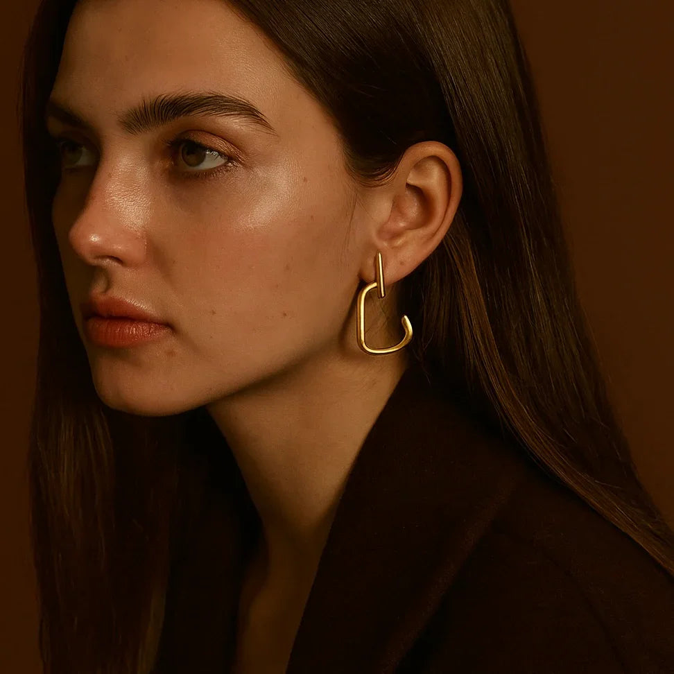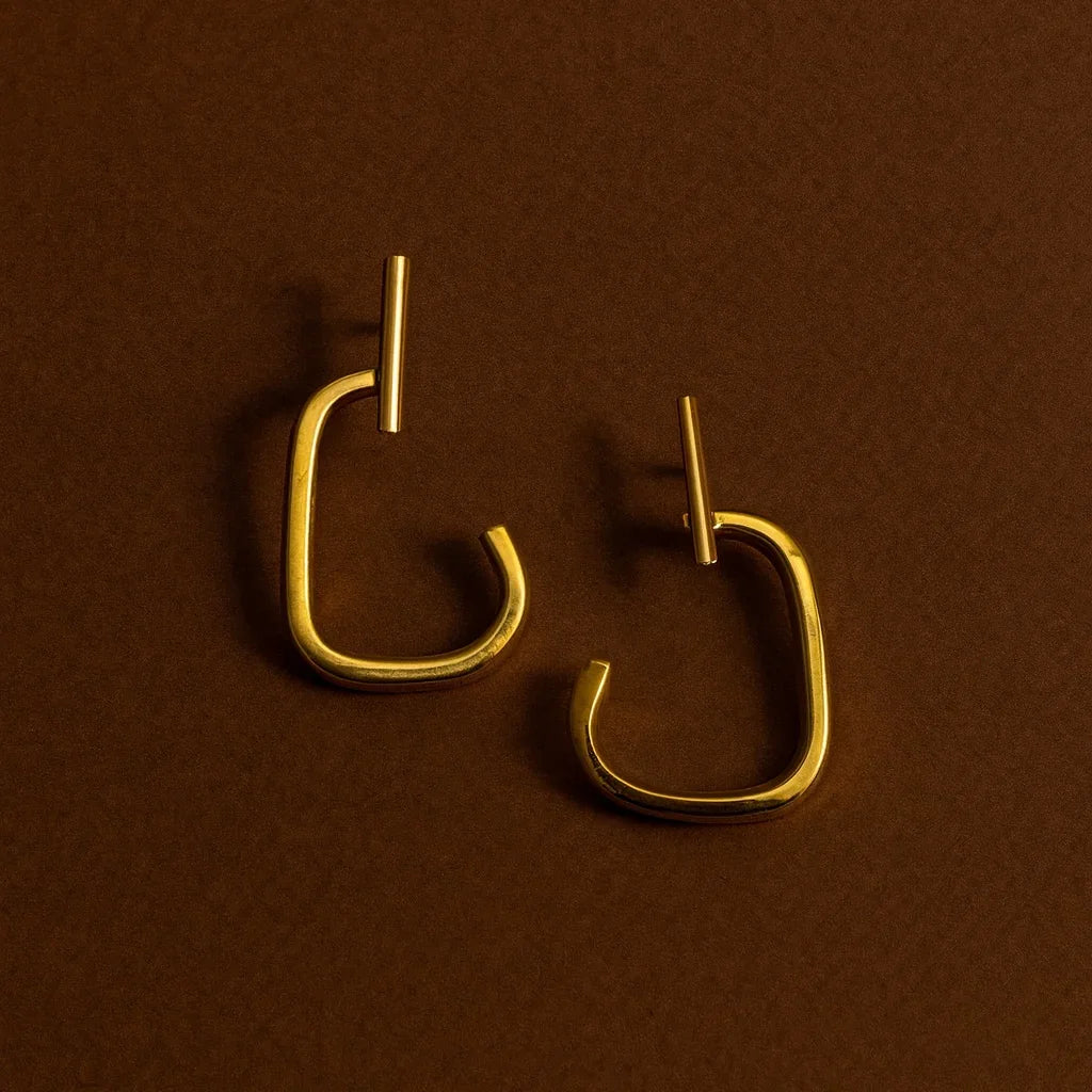 - Produktbeskrivelse : Disse messingøredobbene er dristige, men likevel minimalistiske, og gir struktur og karakter til antrekket ditt. Den geometriske formen gjør dem allsidige for hverdagsbruk eller et statement-stil.