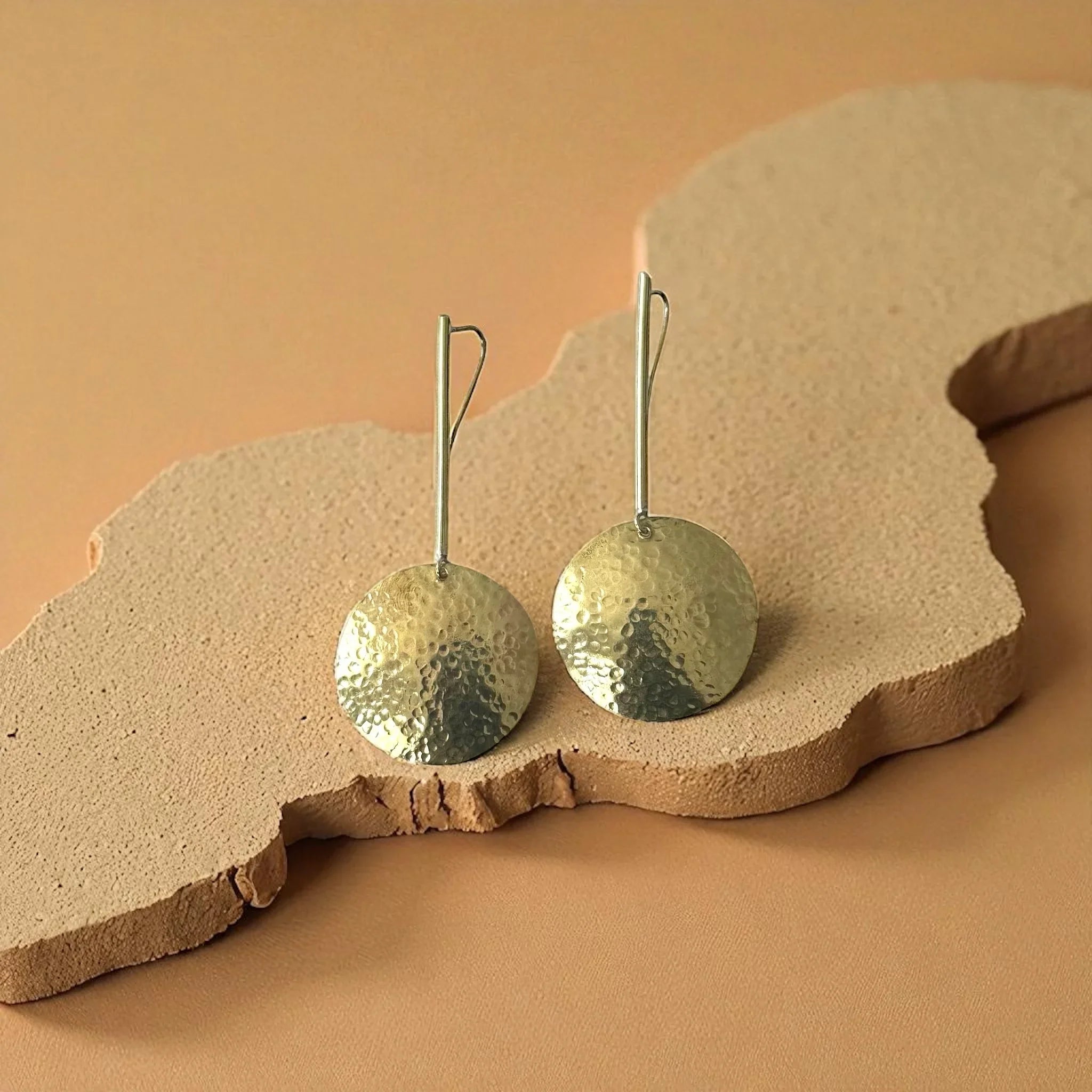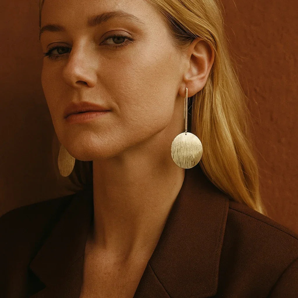 - Produktbeskrivelse : Disse hamrede messingøredobbene er inspirert av den solfylte rytmen i høstsesongen – organiske, sterke og fulle av stille bevegelse. Lette og komfortable å bruke hele dagen.