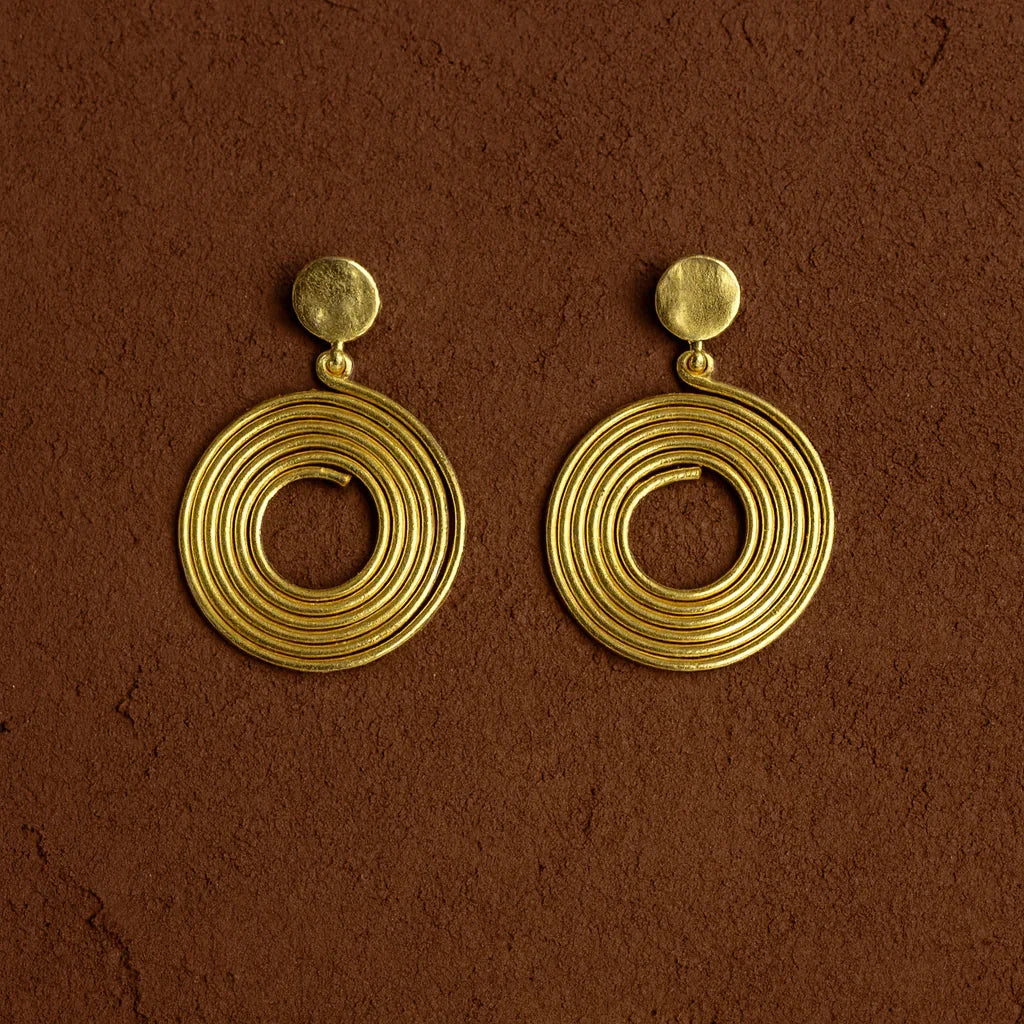 - Produktbeskrivelse : Disse spiralformede messingøredobbene leker med bevegelse og form – symboliserer helhet og uendelig skjønnhet. Lysende og dristig uten tyngden.