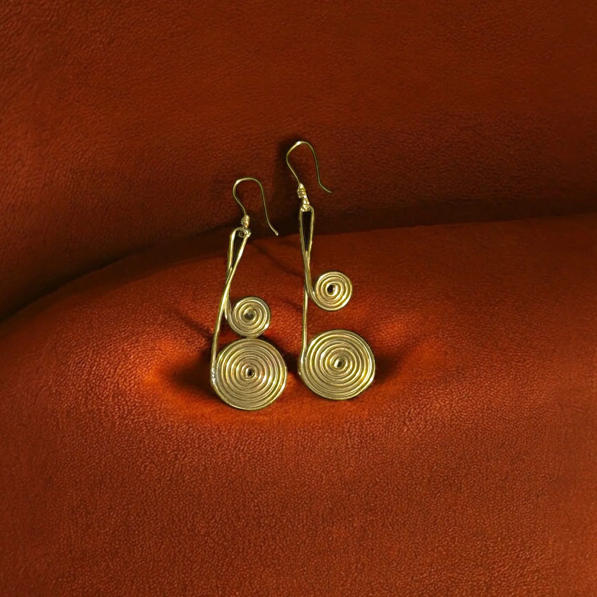 - Produktbeskrivelse : Skulpturerte kurver henter inspirasjon fra afrikanske former og skandinavisk tilbakeholdenhet. Øredobbene viser en ren silhuett med kulturell intensjon. De fremhever håndlaget arbeid av håndverkere i Dakar med fokus på form og balanse.