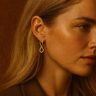 - Product Description: These golden loops meet in perfect harmony. Sleek and bold, they’re the kind of earrings that quietly speak volumes.