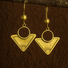 - Product Description: These bold brass earrings blend sharp triangles with soft circular loops—an eye-catching contrast that plays with balance and rhythm.