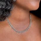 - Description: A rhythmic dance of loops surrounds this finely braided choker, blending strength and softness in every detail. Lightweight and comfortable, this necklace brings an effortless statement to your look.