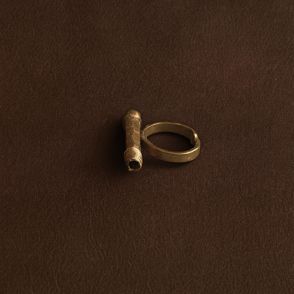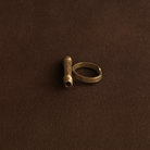 - Product Description: A sculptural brass ring featuring coiled lines and a side opening that reminds a rolled parchment.