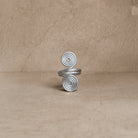 • Product Description: This sculptural ring is a bold celebration of movement and flow. Hand-twisted into double spirals, it draws inspiration from ancient African symbols of growth and evolution.