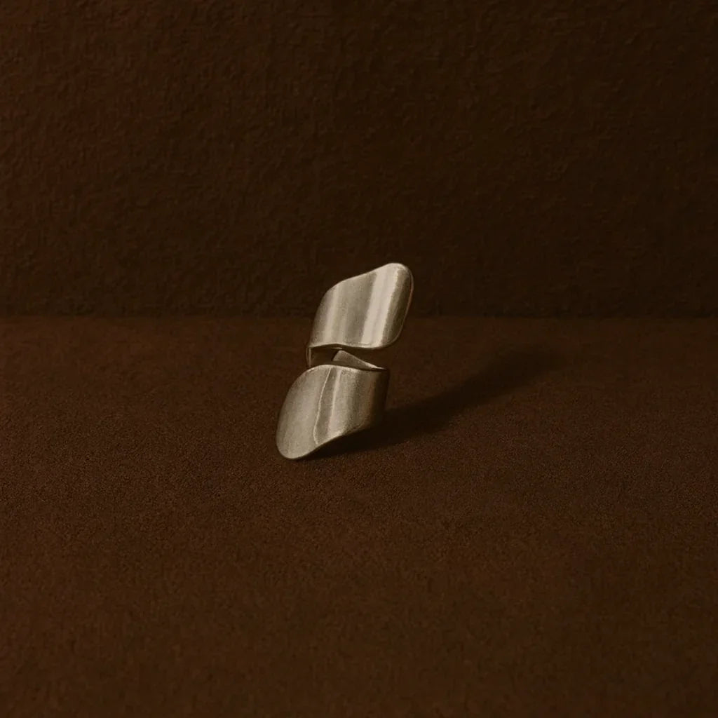 • Produktbeskrivelse: Dristig justerbar ring med skulpturerte, asymmetriske former som fanger lyset. Lett, men likevel iøynefallende, perfekt for både uformelle og formelle antrekk.